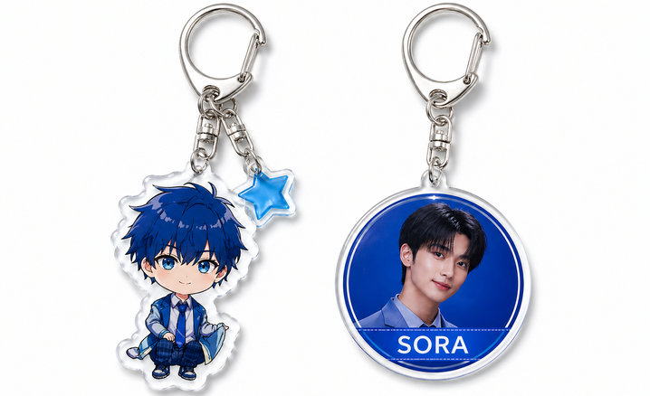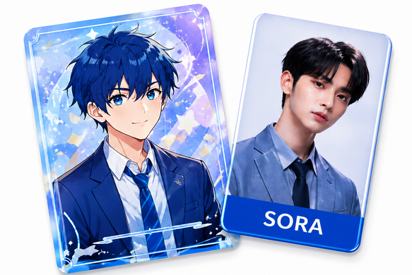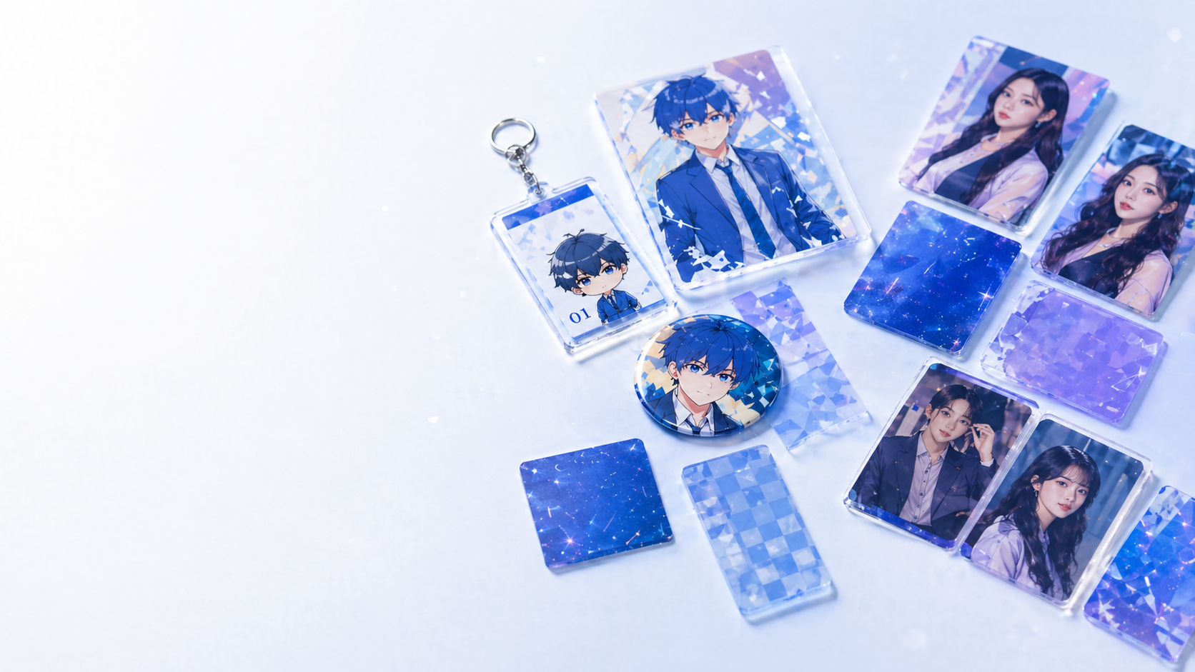 アクスタの台紙・クリアカード・チケット・しおり・コースターなど、厚みのないフラットなアイテムなら幅広く対応しています。