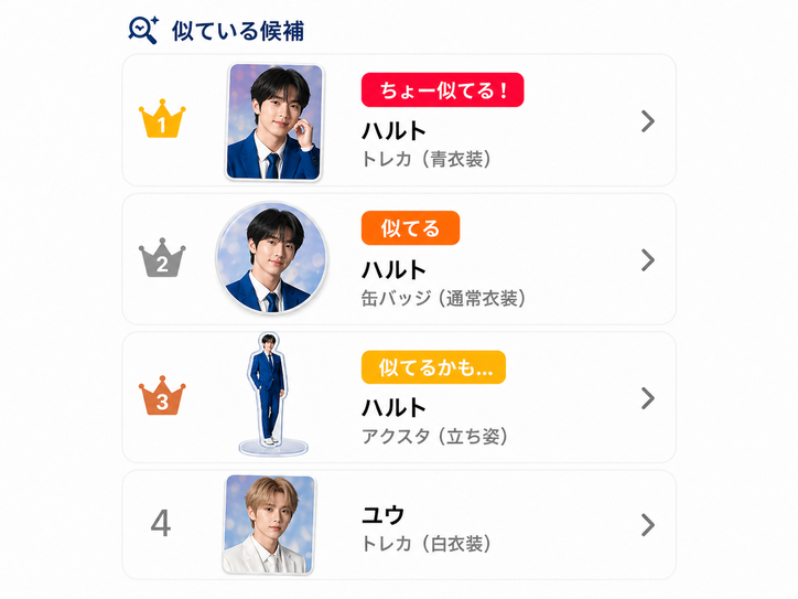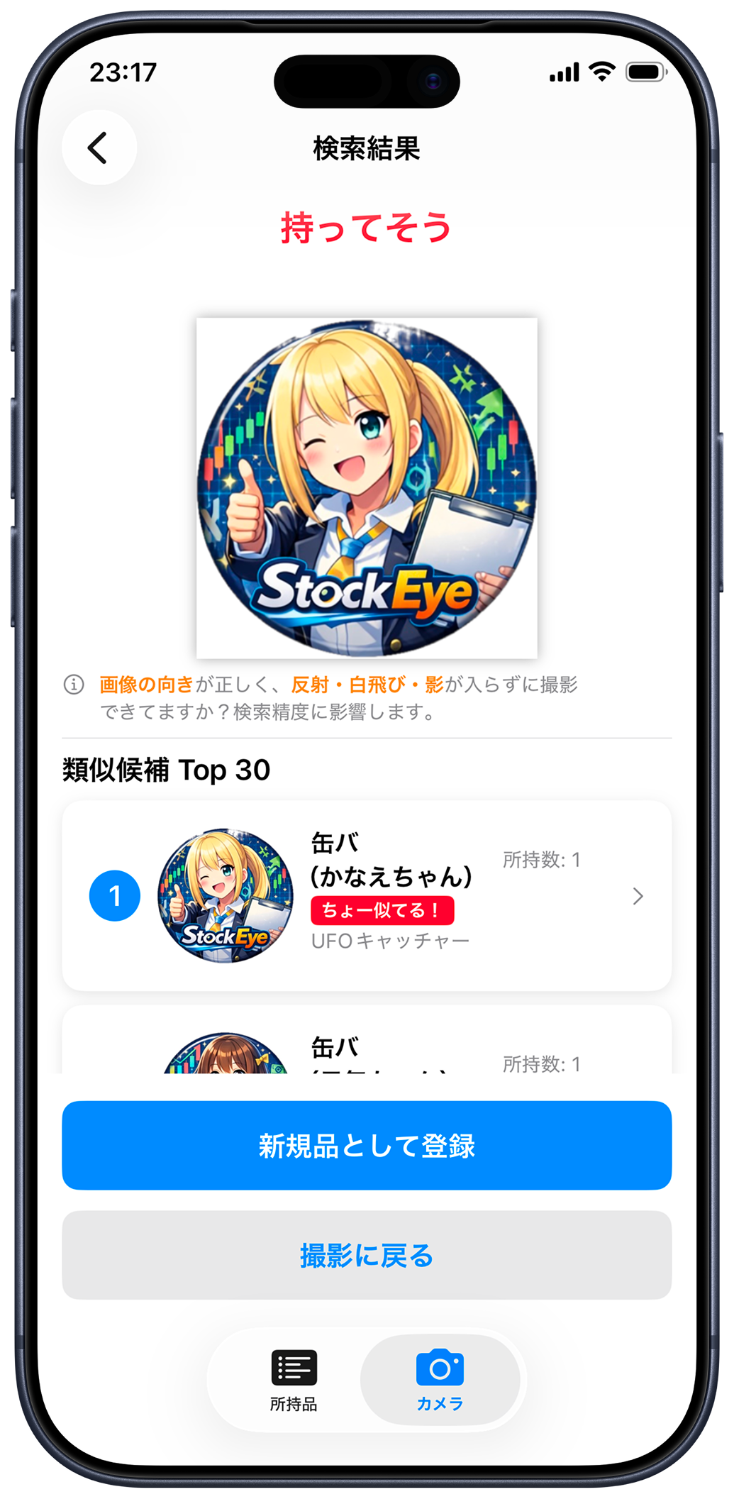 登録済みのグッズから、似ているアイテムを見つけてダブリ買いを防止。