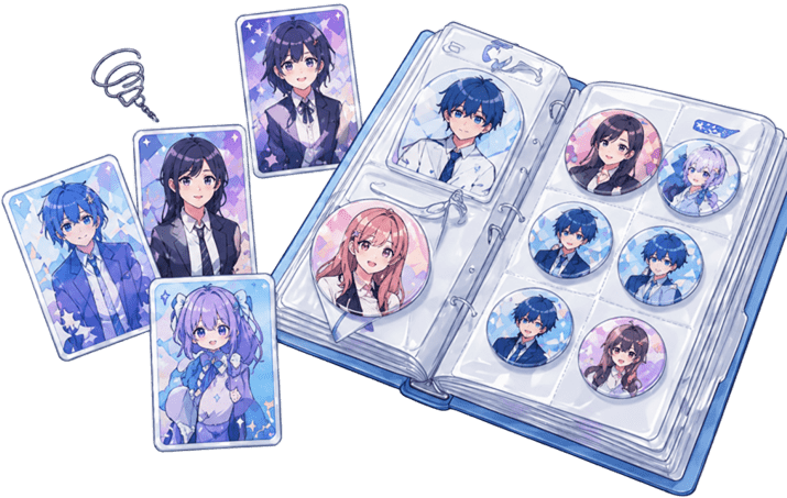 トレカや缶バッジ、ブロマイドなどグッズをまとめて管理。