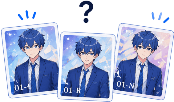 衣装違い・表情違い・背景違い。ぱっと見だけじゃ判断できない…。
