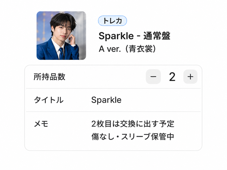 複数所持やメモもまとめて残せるから、推し活グッズの管理がラクになります。