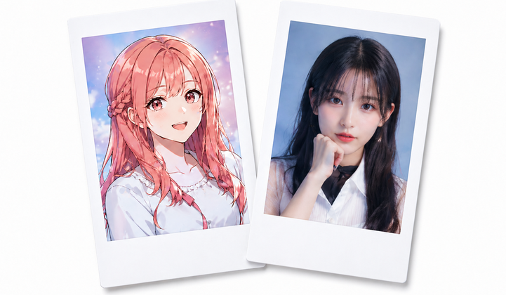 チェキ風・証明写真風など各種ミニフォトに対応。